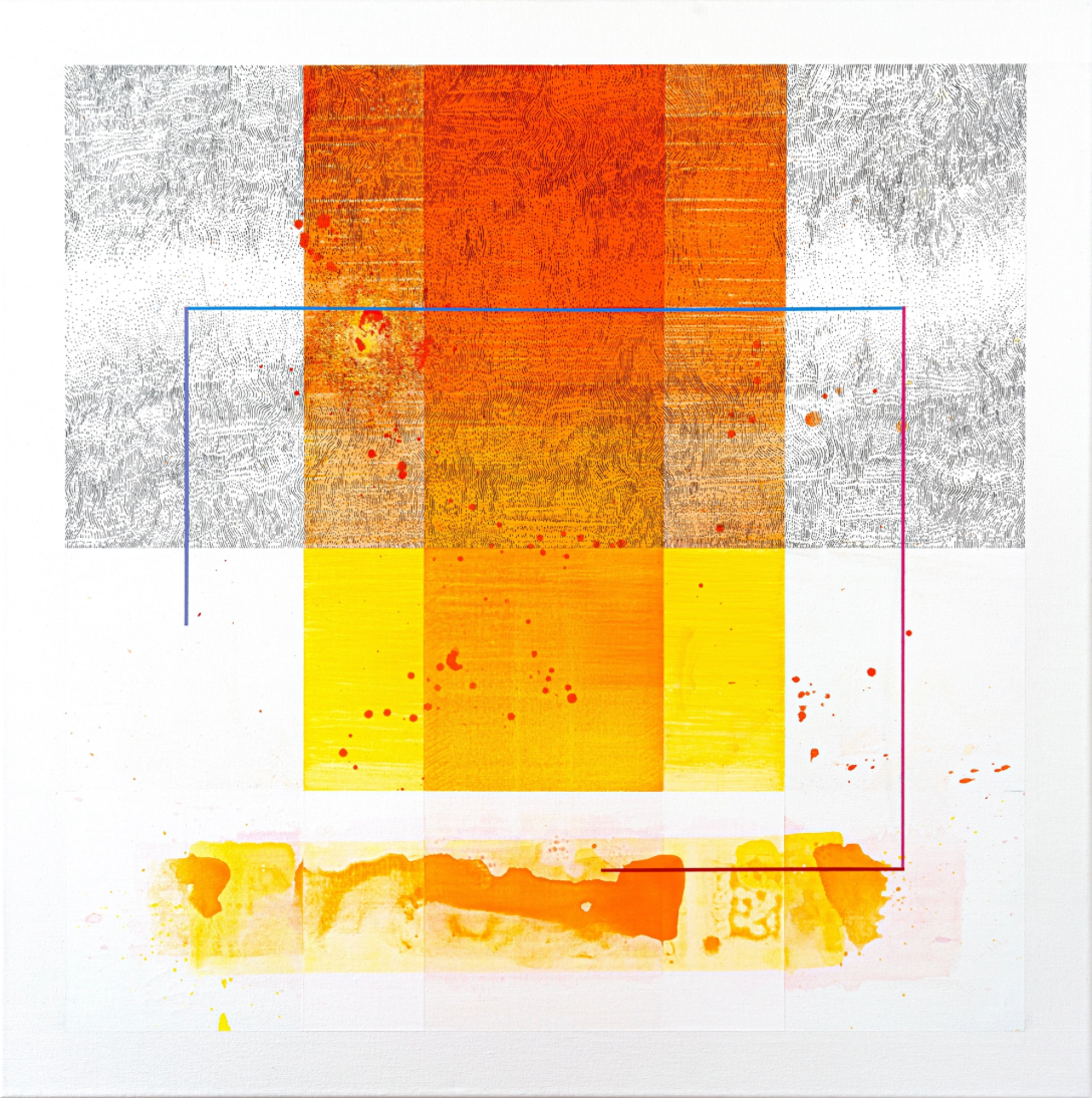 My pictorial works explore the visual dialogue between notions of structure and randomness in the search for a balance between minimalism and expressionism. This particular field of expression is explored by contemporary jazzmen who improvise (the random) within a melody (the chromatic composition) and a rhythm (the geometric structure).